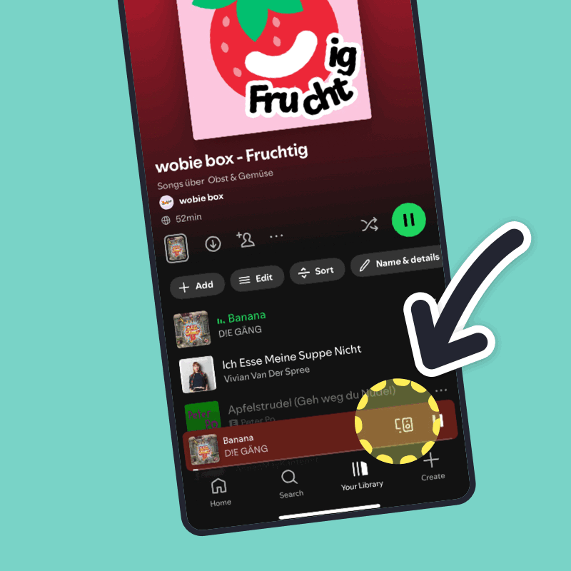 De muziek wordt nu rechtstreeks via de box afgespeeld - niet langer via je smartphone.Opmerking: Je hoeft de wobie box alleen te selecteren voor de eerste afspeellijst via Spotify Connect.